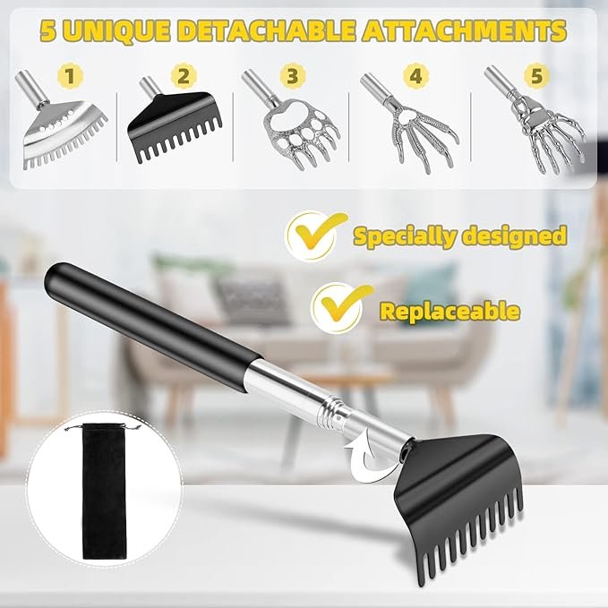 Tukuos Telescoping Back Scratcher with 5 Detachable Heads